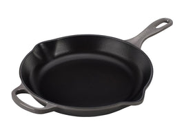 Cast iron skillets are indispensable in the kitchens of home cooks and professional chefs alike. The interior surface of a Le Creuset skillet is finished with a matte black enamel that eliminates ...