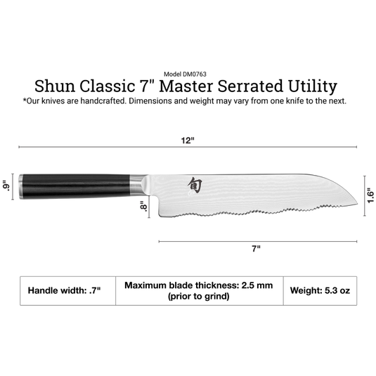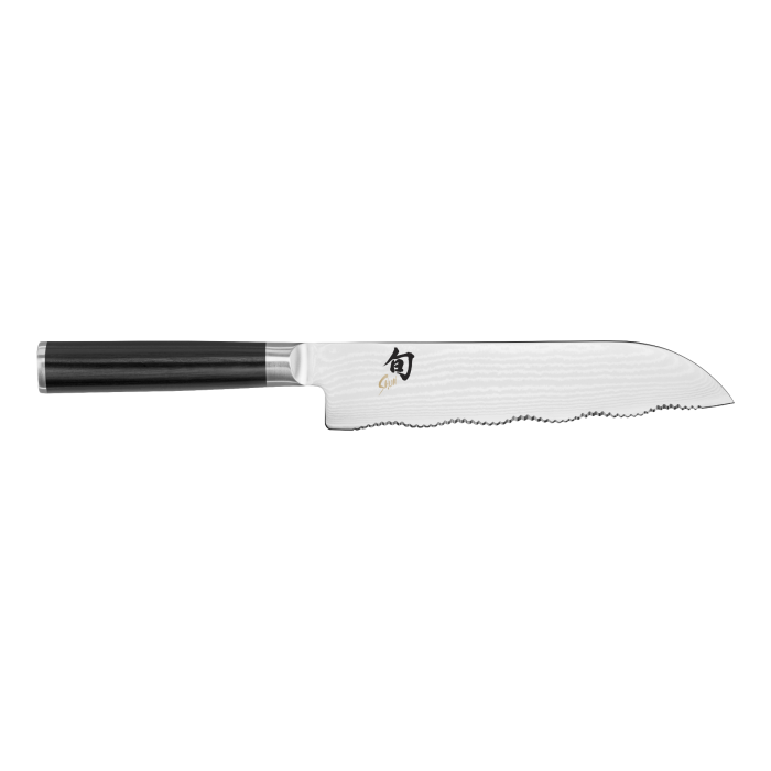 The Shun Classic Dual Density Utility Knife was designed for maximum slicing performance on difficult-to-cut foods; especially those foods that are tough on the outside and delicate on the inside like crusty breads, crusted roasts or leathery skinned vegetables.