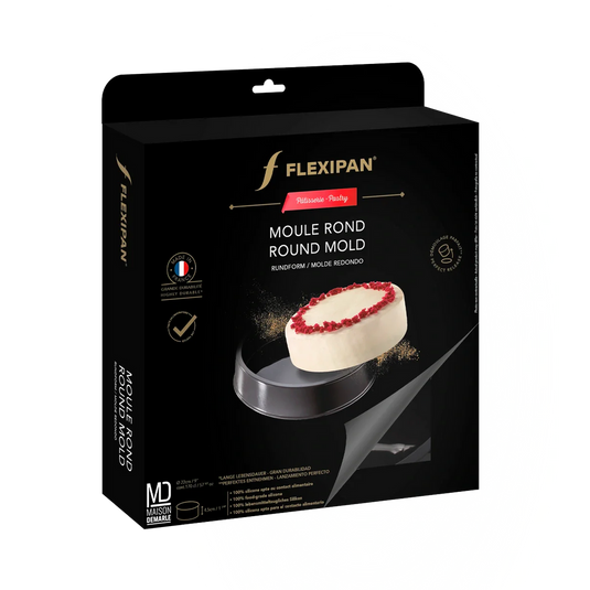 Choosing the Flexipan® Round Mold is the assurance of a moment of pleasure and sharing in the kitchen. Thanks to the platinum silicone, say goodbye to butter and oil to grease your mold and enjoy perfect unmolding to make a beautiful gourmet preparation!