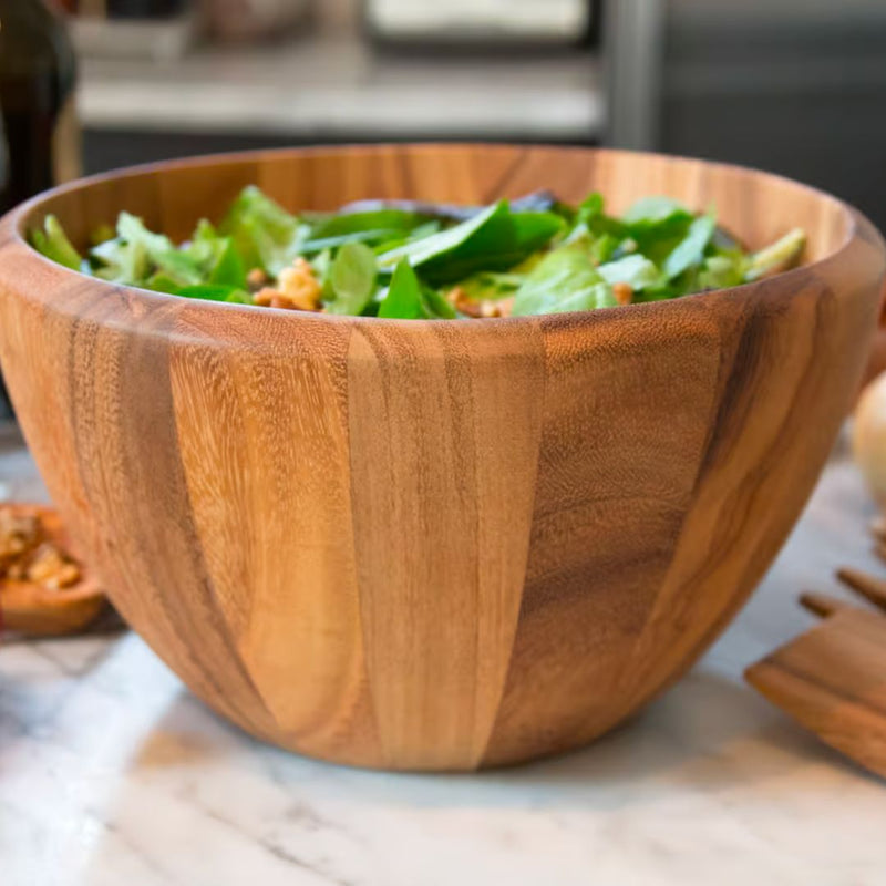 Serve salads in style. Made of gorgeous Acacia hardwood, this Extra Large Bowl is versatile and beautiful due to its rich, shimmering colors. Its classic, wooden construction will look incredible on your kitchen table, adding warmth and a personal touch to any meal. This bowl is sturdy and large enough to hold a large salad accommodating many guests, making it a staple item for cooks who love to serve. Decorative functionality at its finest.