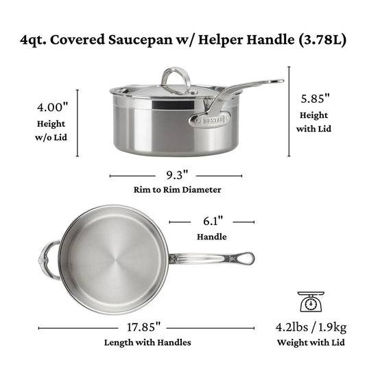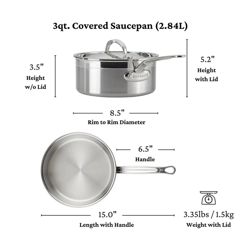 Push culinary boundaries with cookware innovation by equipping the kitchen with a Hestan ProBond Stainless Steel Saucepan. Available in 4 sizes, ProBond,s Professional Clad Stainless Steel saucepans are handcrafted in Italy using a tri-ply body and responsive pure aluminum core for optimum performance, metal-utensil-safe durability, and fast, even heat distribution. Sealed rims are flared for precision pouring, while ergonomic handles are secured with flush rivets to provide a firm, comfortable hold when cooking or serving. These durable saucepans are dishwasher safe for a quick cleanup and oven/broiler safe to 600°F for ultimate cooking versatility.
