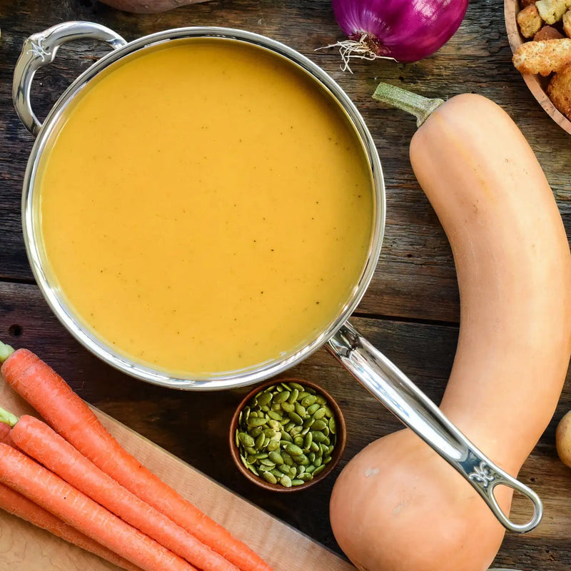 Available in 4 sizes, with a pure aluminum core these saucepans are designed with a wider base for efficient heating and stirring, and sealed, flared rims for precision pouring.