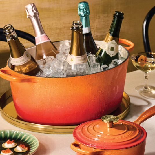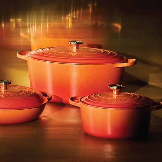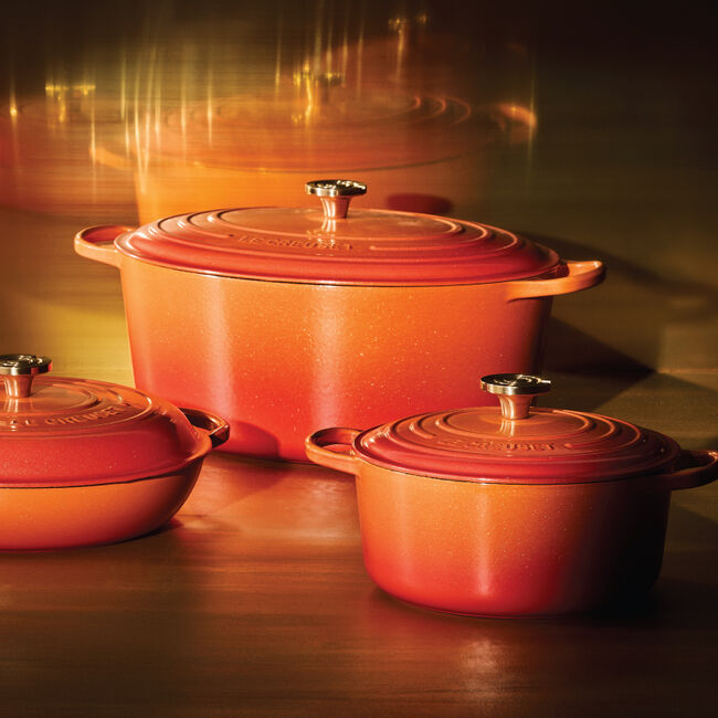 One hundred years after introducing the heritage color that ignited it all, Le Creuset’s eternal flame just became brighter. Flamme Dorée – Golden Flame – strikes a perfect balance between rich tradition and modern innovation. This reimagined classic features a fresh, glistening sheen and an iconic stainless steel crucible knob with a light gold finish. Vibrant, familiar, and globally recognizable, this celebratory hue pays tribute to the past while illuminating the path to the future.