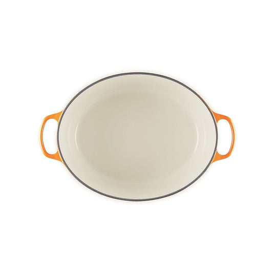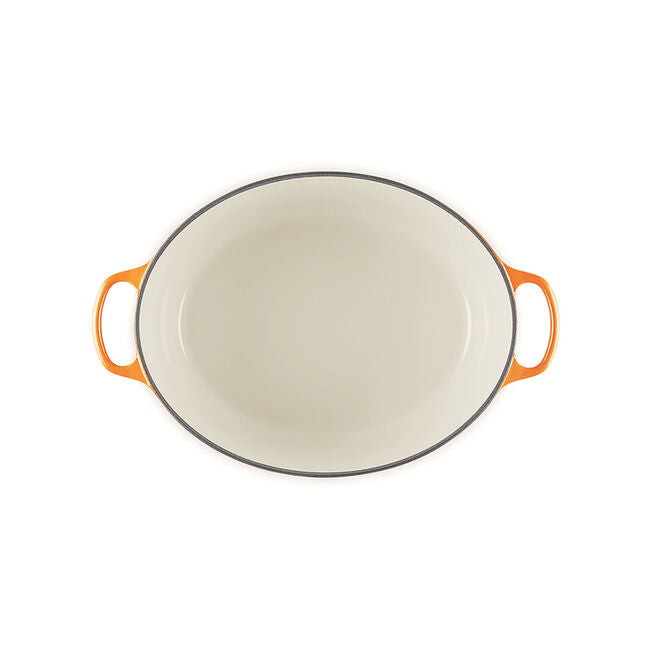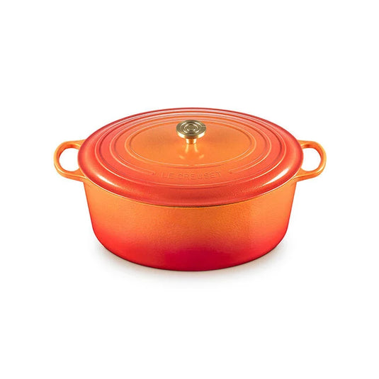 The iconic Le Creuset Dutch oven is indispensable in the kitchens of home cooks and professional chefs alike. Expertly crafted from enabled cast iron, the everyday versatility of the Dutch oven makes it ideal for everything from slow-cooking and braising to roasting, baking, frying and more. The oval shape is perfectly suited for larger cuts of meat, whole chickens and for baking oval-shaped loaves of bread.