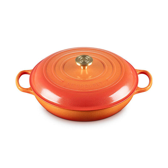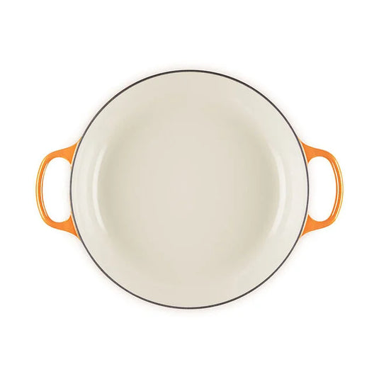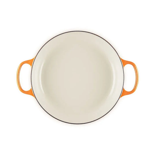 One hundred years after introducing the heritage color that ignited it all, Le Creuset’s eternal flame just became brighter. Flamme Dorée – Golden Flame – strikes a perfect balance between rich tradition and modern innovation. This reimagined classic features a fresh, glistening sheen and an iconic stainless steel crucible knob with a light gold finish. Vibrant, familiar, and globally recognizable, this celebratory hue pays tribute to the past while illuminating the path to the future.