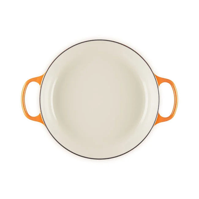 The iconic Le Creuset Dutch oven is indispensable in the kitchens of home cooks and professional chefs alike. Expertly crafted from enabled cast iron, the everyday versatility of the Dutch oven makes it ideal for everything from slow-cooking and braising to roasting, baking, frying and more. The oval shape is perfectly suited for larger cuts of meat, whole chickens and for baking oval-shaped loaves of bread.