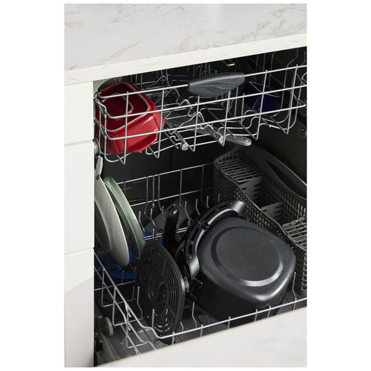 • Removable tray and basket are dishwasher safe
